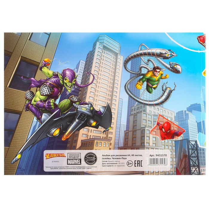 Альбом для рисования А4, 40 листов 100 г/м², на склейке, Человек-паук — Характеристики
