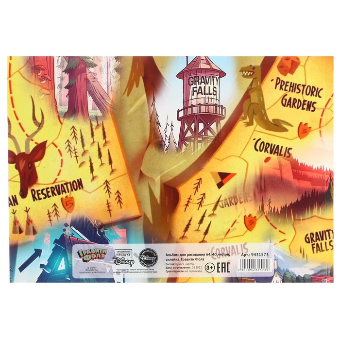 Альбом для рисования А4, 40 листов 100 г/м², на склейке, «Гравити Фолз» — Характеристики