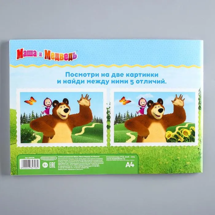 Альбом для рисования А4, 40 листов 100 г/м², на скрепке, «Маша и медведь» — Характеристики