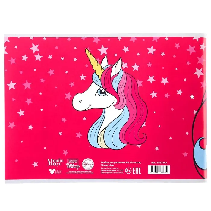 Альбом для рисования А4, 40 листов 100 г/м², на скрепке, «Минни Маус и единорог» — Характеристики