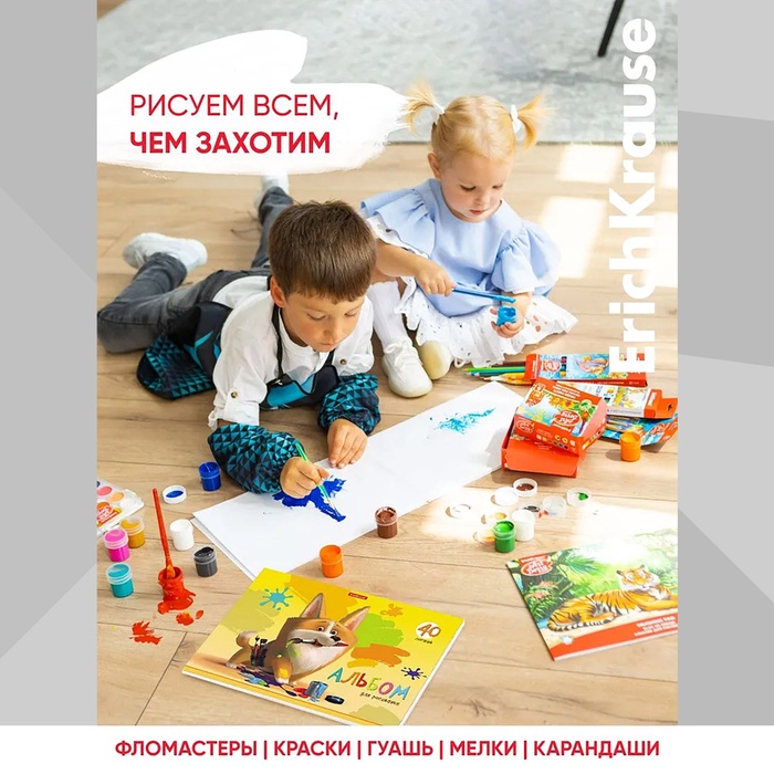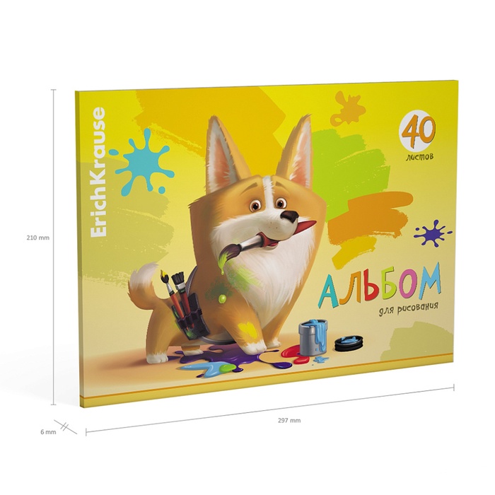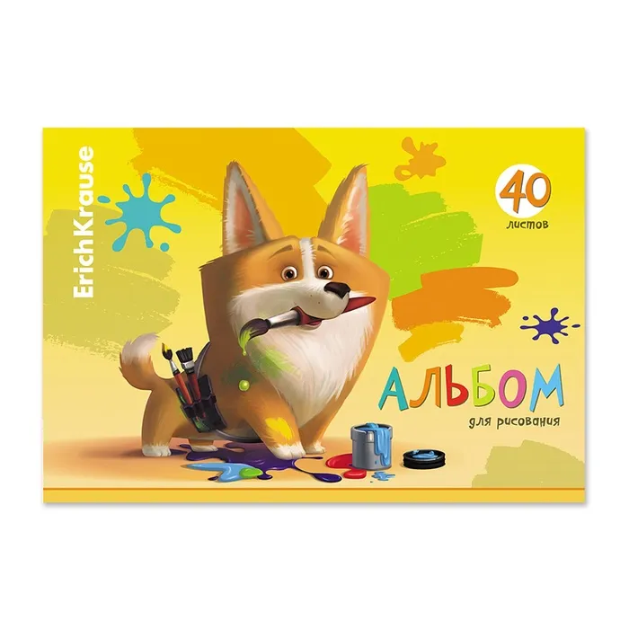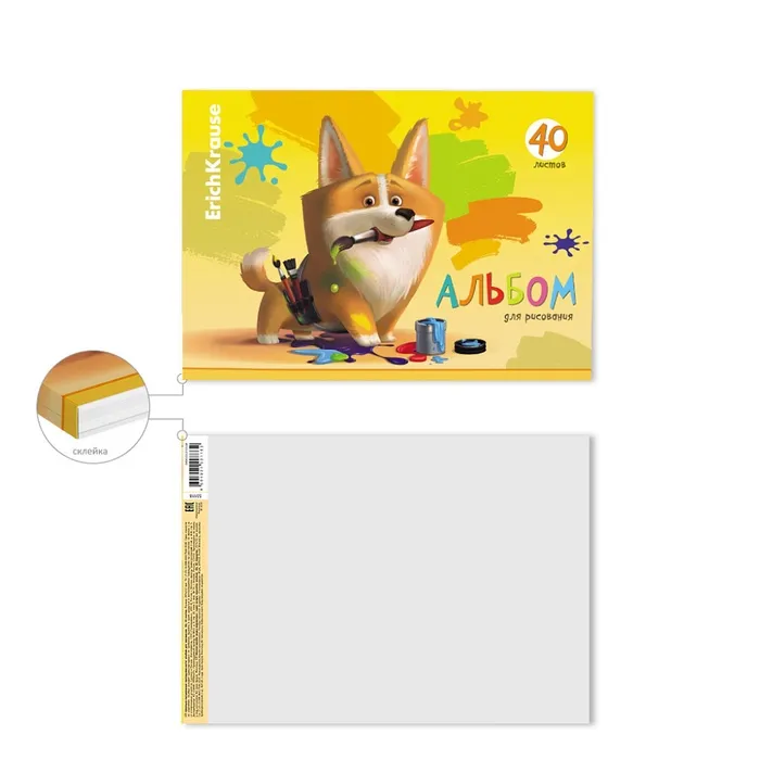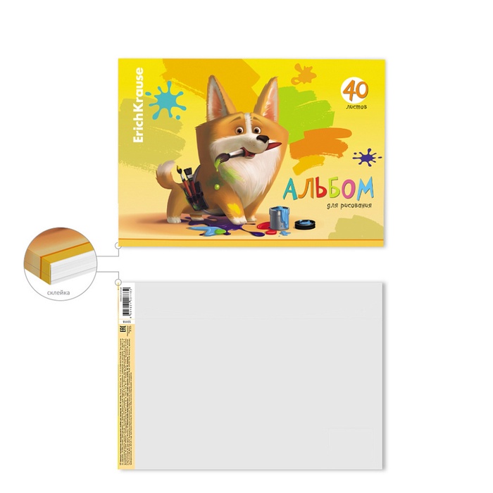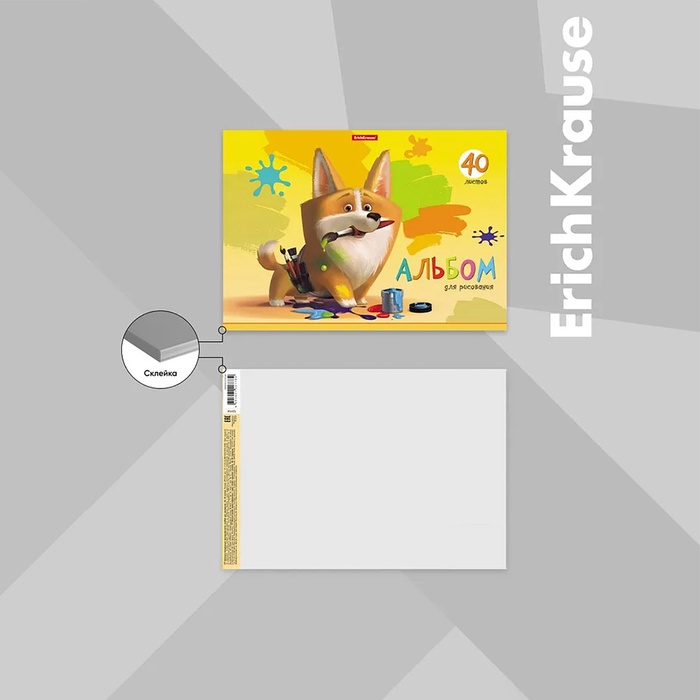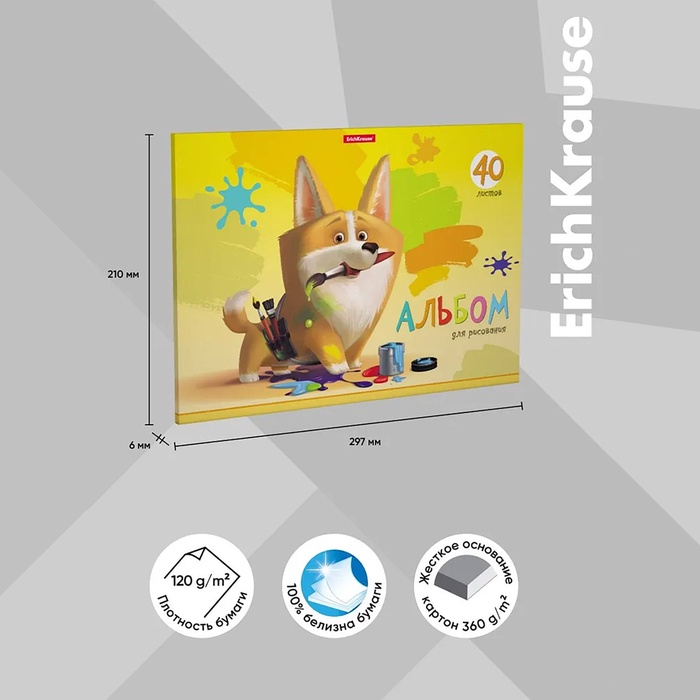 Альбом для рисования А4, 40 листов, блок 120 г/м², на клею, Erich Krause «Корги», 100% белизна, твёрдая подложка — Характеристики