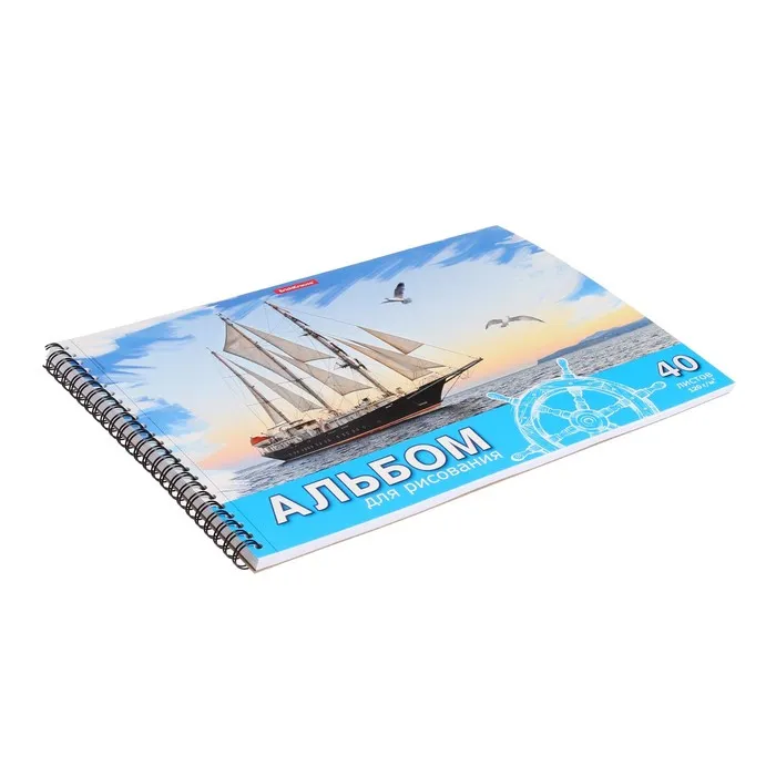 Альбом для рисования формата А4 (210х294 мм). Обложка из высококачественного мелованного картона плотностью 170 г/м2. Жесткая подложка 360 г/м2. В блоке 40 листов. Бумага плотностью 120 г/м2. Белизна бумаги - 100%. Микроперфорация для отрыва. Тип скрепления - спираль. Альбомы упакованы в термоусадочную пленку по 5 штук.