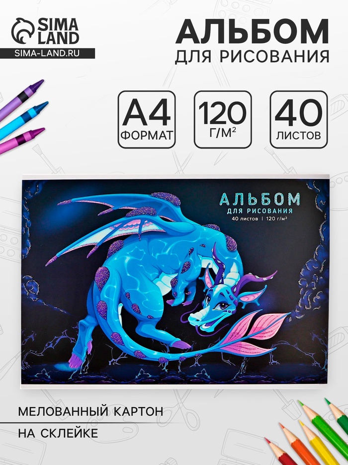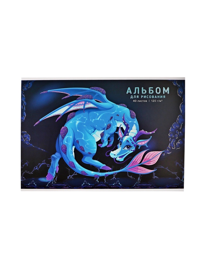 Альбом для рисования А4, 40 листов на клею «Милый дракон», глиттер, плотность листов120 г/м² — Характеристики