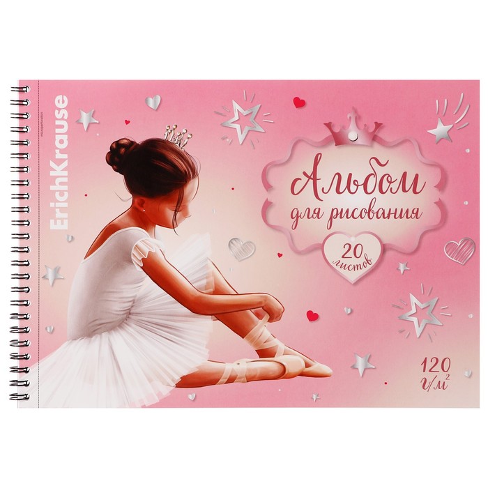 Альбом для рисования А4, 20 листов, блок 120 г/м², на спирали, Erich Krause «Pointes», 100% белизна, перфорация на отрыв, твёрдая подложка