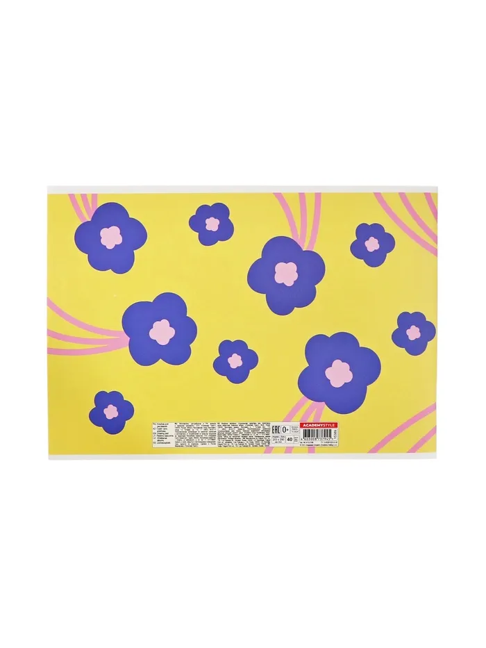 Альбом для рисования А4, 40 листов на скобе «Цветы на желтом», матовая ламинация, плотность листов 100 г/м² — Характеристики