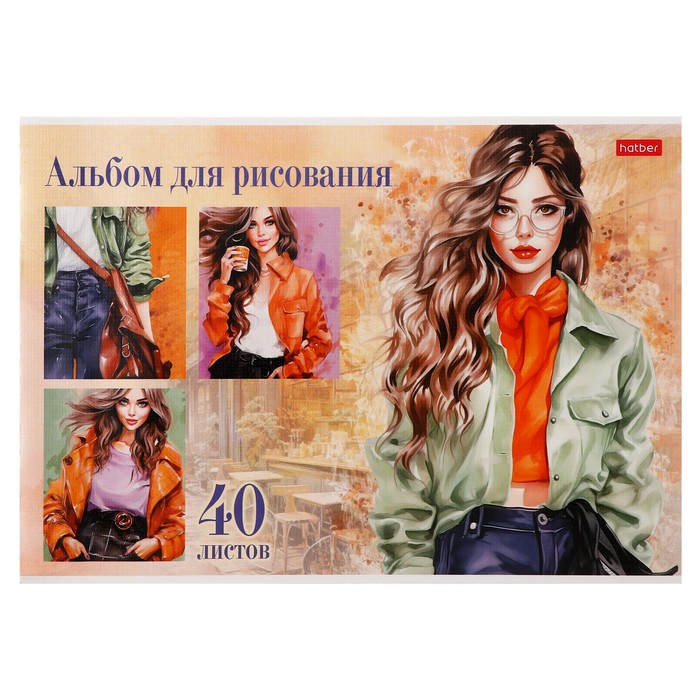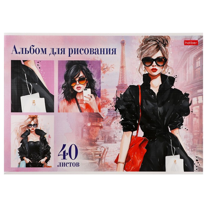 Альбом для рисования А4, 40 листов "Стильные красотки", обложка мелованный картон, тиснение, блок 100 г/м2, МИКС — Характеристики