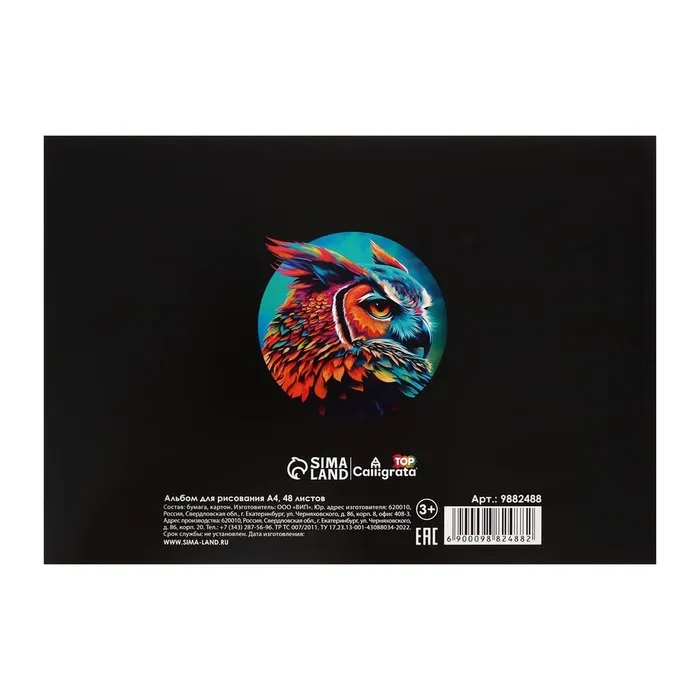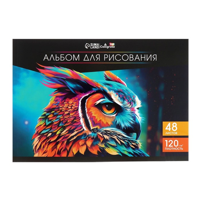 Альбом для рисования А4, 48 листов на склейке Calligrata TOP, обложка мелованный картон, выборочный УФ-лак, блок офсет 120 г/м² — Характеристики