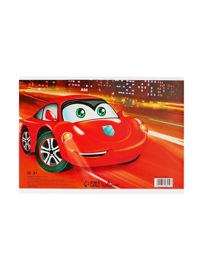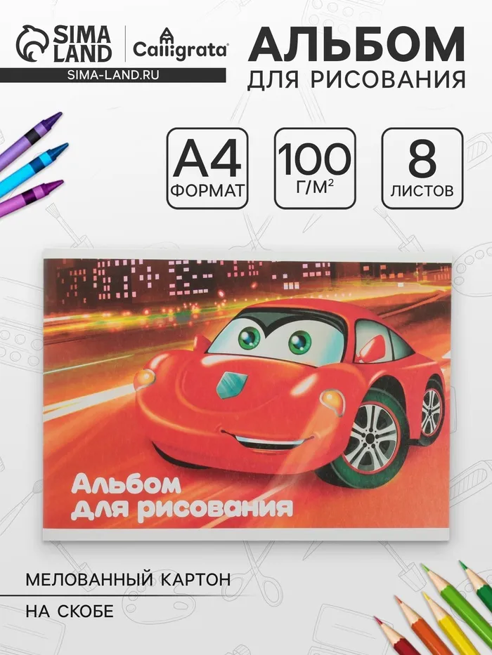 Альбом для рисования А4, 8 листов на скрепке "Тачка", обложка мелованный картон, внутренний блок офсет 100 г/м² — Характеристики