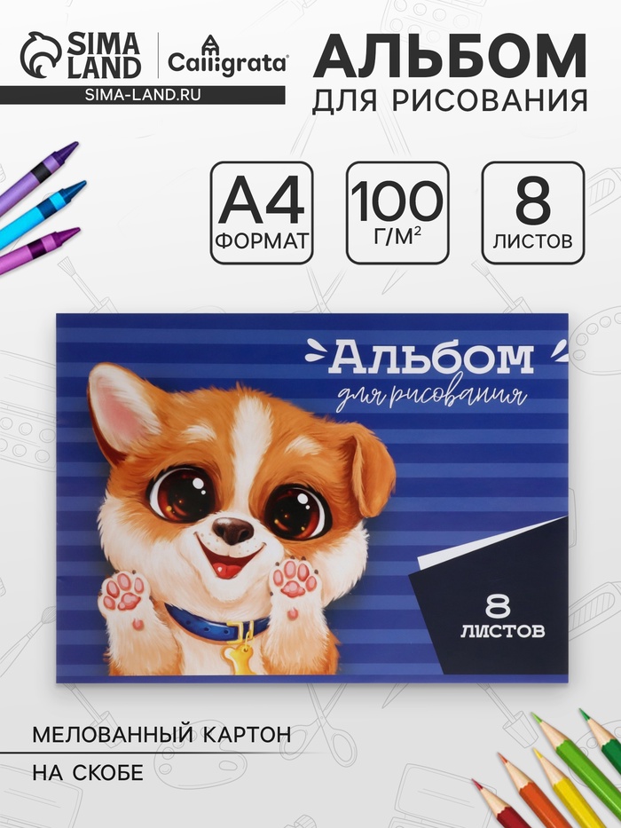 Альбом для рисования А4, Calligrata, 8 листов на скрепке, МИКС — Характеристики