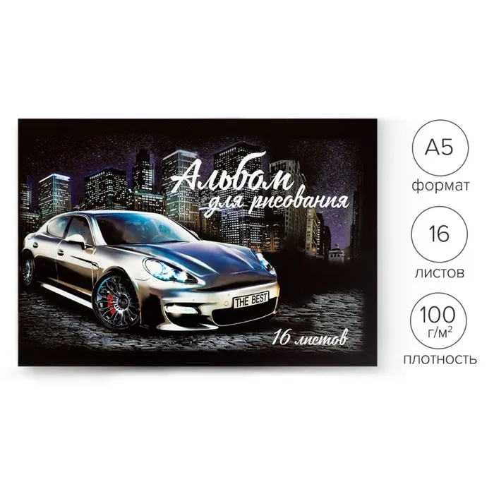 Альбом для рисования А5, 16 листов на скрепке «Лучшее Авто», обложка мелованный картон, внутренний блок офсет 100 г/м² — Характеристики