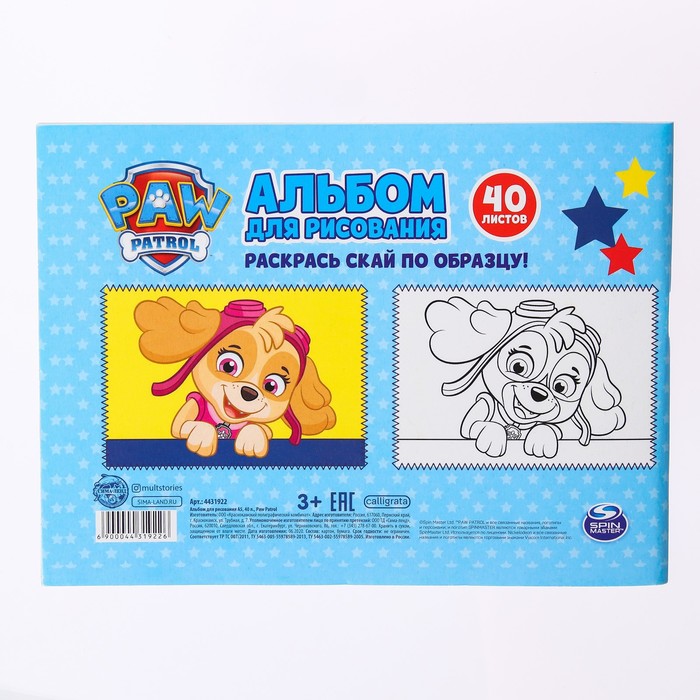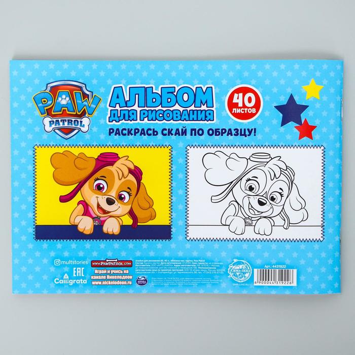 Альбом для рисования А5, 40 листов 100 г/м², на скрепке, «Щенячий патруль» — Характеристики