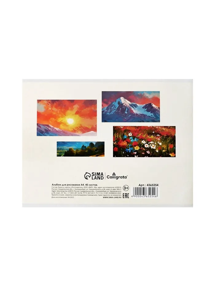 Альбом для рисования Calligrata А4, 40 листов на скрепке, обложка мелованный картон, МИКС — Характеристики