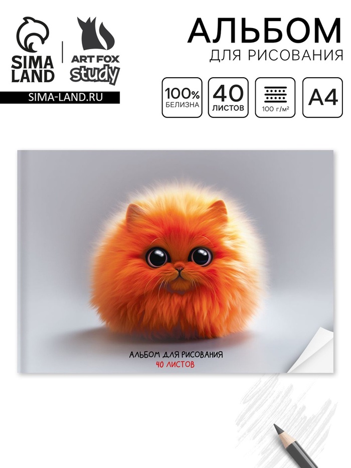 Альбом для рисования на скрепке А4, 40 листов «Рыжий пушистик»