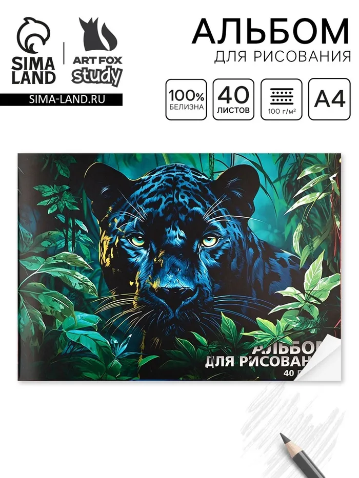 Альбом для рисования на скрепке А4, 40 листов «Пантера» — Характеристики