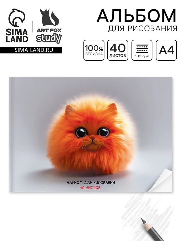 Альбом для рисования на скрепке А4, 40 листов «Рыжий пушистик» — Характеристики