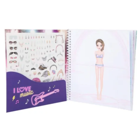 Альбом с наклейками TOPModel Dress Me Up Наряди Меня от Depesche для создания самых ярких и неожиданных образов Топ Моделей в стиле поп-звезд. С его помощью ты научишься создавать самые модные и стильные образы для Топ Моделей, сочетать одежду по стилю и цвету. Внутри ты найдешь множество силуэтов моделей, которых нужно одеть в разнообразную одежду с помощью неповторяющихся наклеек. А еще Топ Модели очень любят украшения и различные аксессуары. Дополни их образ модной кепкой или шарфом, серёжками или очками. А может кому то достанется бриллиантовое колье? Решаешь только ты! В альбоме 22 листа на спиральном переплете. Внутри Вы найдете 24 страницы с контурами моделей для создания уникальных образов и нарядов, с помощью многочисленных наклеек представленных на 11-ти листах. Творческим вдохновением могут послужить 3 цветные работы художников-создателей этого альбома.
