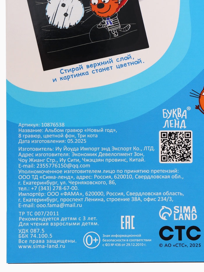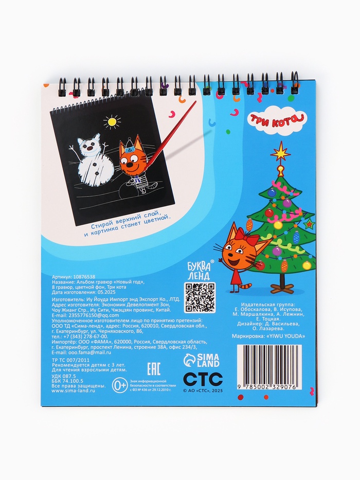 Альбом гравюр «Новый год», 8 гравюр, цветной фон, Три кота — Характеристики