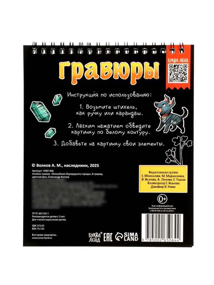 Альбом гравюр «Волшебник изумрудного города», 8 гравюр, цветной фон, Александр Волков — Характеристики