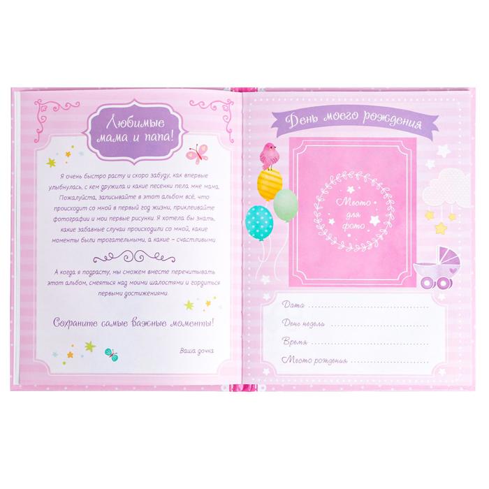 Сохраните все важные и трогательные моменты первого годика жизни вашей малышки. Записывайте в альбом всё, что происходит с крохой в это время. Когда в первый раз улыбнулась? Какое было её первое слово? Фиксируйте забавные случаи, первые фразы, вклеивайте фотографии, чтобы потом вместе с подросшей малышкой прочитать эту книгу-альбом.