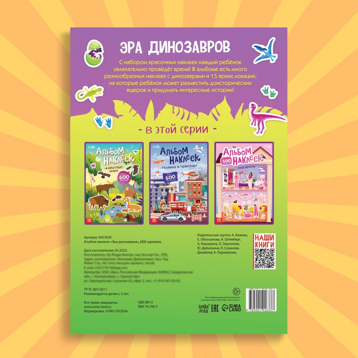Альбом наклеек «Эра динозавров», 600 наклеек — Характеристики