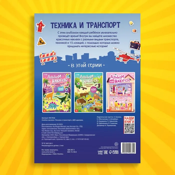Альбом наклеек «Техника и транспорт», 600 наклеек — Характеристики