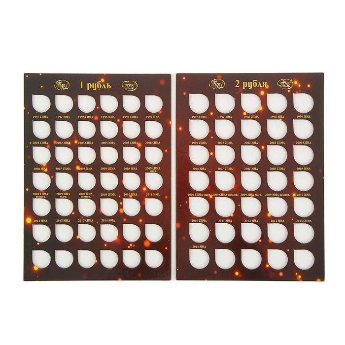 Альбом-планшет для монет «Современные рубли: 1 и 2 руб. 1997- 2017 гг.», два монетных двора — Характеристики