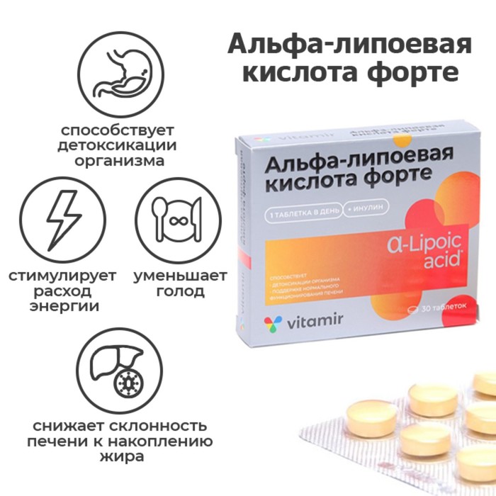 Область применения: для реализации населению в качестве биологически активной добавки к пище - источника альфа-липоевой кислоты, для ускорения расщепления жиров и энергообмена в клетках, повешения тонуса мышц и выносливости, стимуляции потери веса при физических нагрузках.
