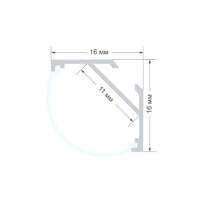 Алюминиевый профиль для светодиодной ленты GM-08-08 по своей конструкции является накладным угловым, а это значит, что такой вариант профиля идеально подходит для монтажа накладным способом в угол между двумя плоскими поверхностями, а его свечение направлено под углом 45°. Данная модель алюминиевого профиля имеет размер 16х16х1000мм, и внутри него можно разместить светодиодную ленту шириной до 10мм. В алюминиевый профиль уже установлен рассеиватель белого цвета, изготовленный из светорассеивающего поликарбоната. Такой рассеиватель пропускает 70 % светового потока и делает его более мягким и приятным для ваших глаз, поэтому наиболее часто используется для решения задач по организации декоративного и основного освещения. Также в комплекте с профилем идут заглушки в количестве 2-х шт. Благодаря дробеструйной обработке профиль имеет приятную матовую поверхность, а анодирование сохранит благородный серебристый цвет, защищая профиль от окисления.