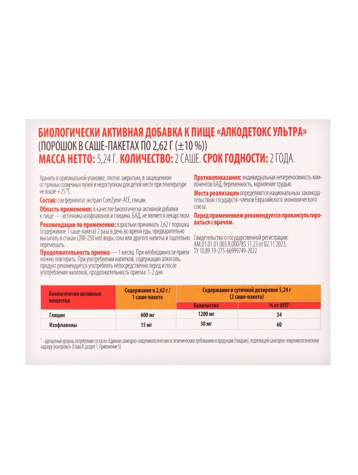 Алкодетокс Ультра «Витамир», поддержка печени и выведения токсинов, 2 саше — Характеристики