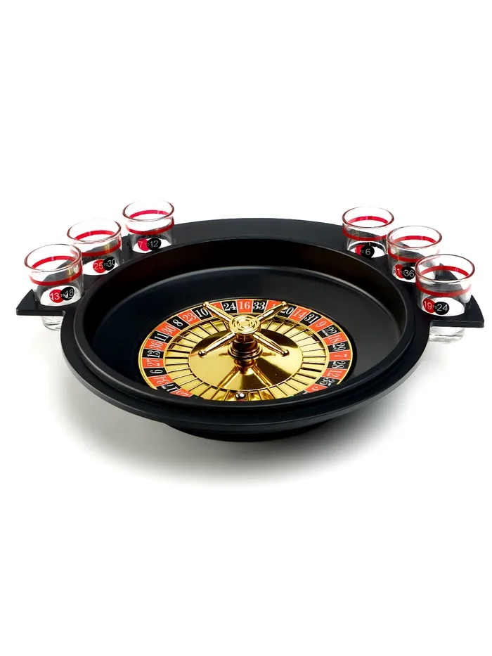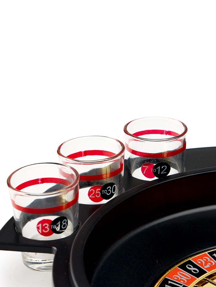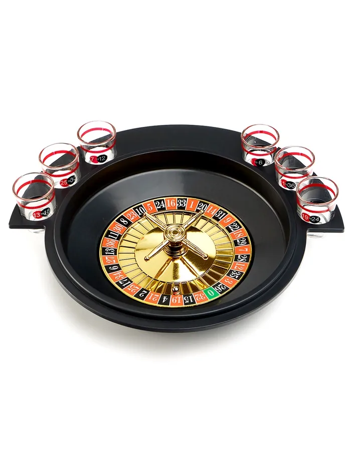 Правила игры: игрокам присваиваются номера, которые отмечены на стопках. Раскручиваете рулетку, бросаете шарик и ждете. На какой номер укажет шарик, игрок с этим номером выпивает стопку до дна. И так далее. Будьте осторожны-градус повышается, закуску готовьте заранее!