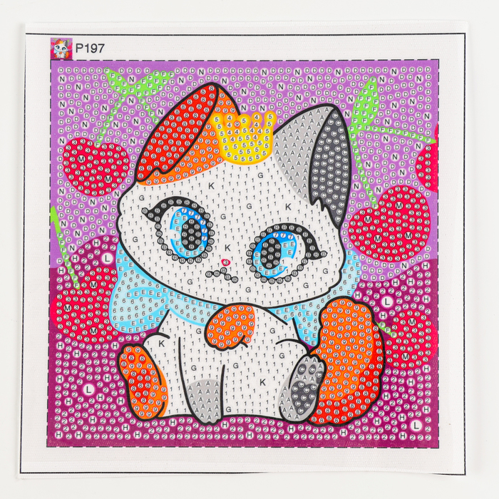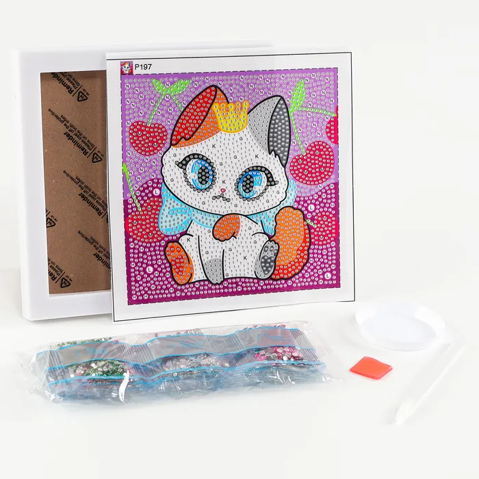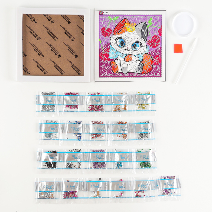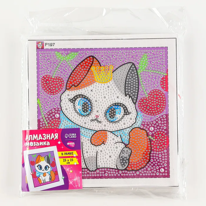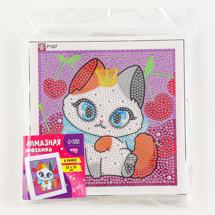 Алмазная мозаика для детей на раме с полным заполнением разнымии стразами «Кошечка», 15 х 15 см — Характеристики