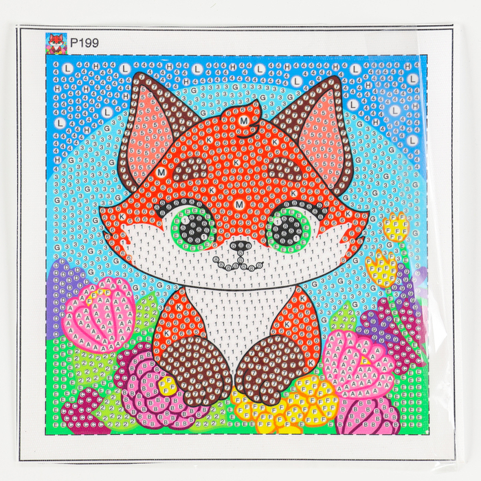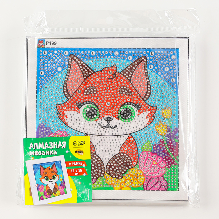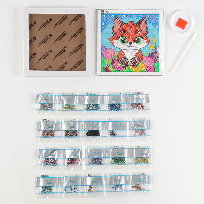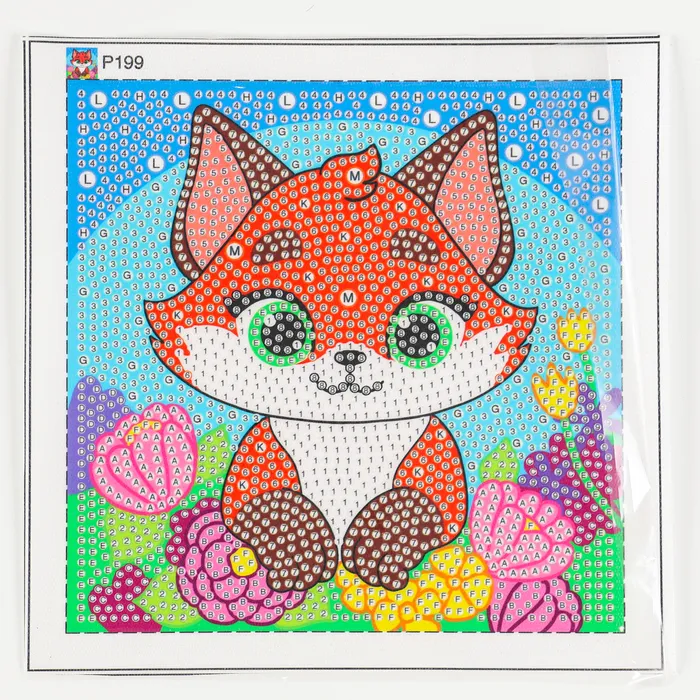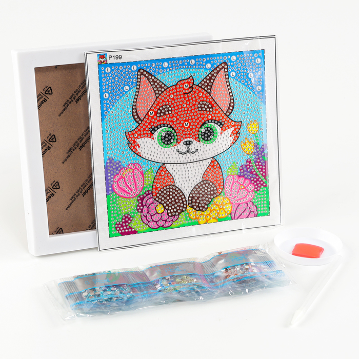 Алмазная мозаика для детей на раме с полным заполнением разнымии стразами «Лисичка», 15 х 15 см — Характеристики