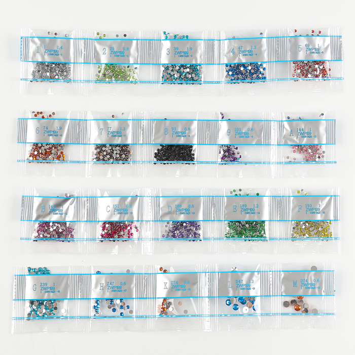 - Разложите кристаллики с помощью карандаша по указанной схеме, заполнив полотно. На картине уже обозначены необходимые оттенки. Холст с клеевым покрытием будет надёжно удерживать стразы.