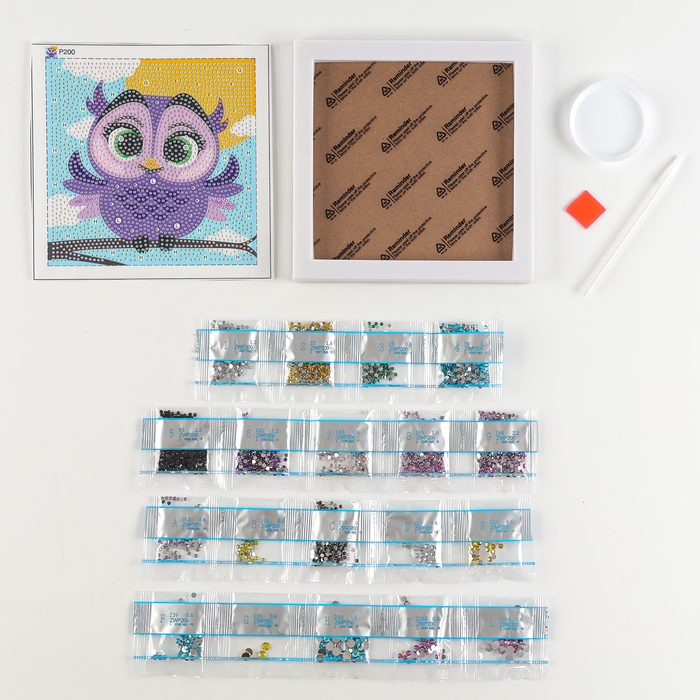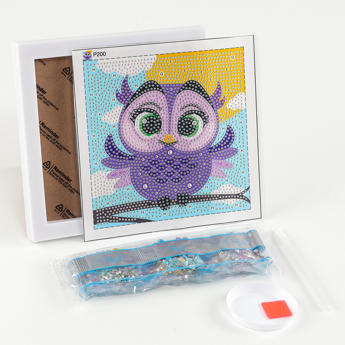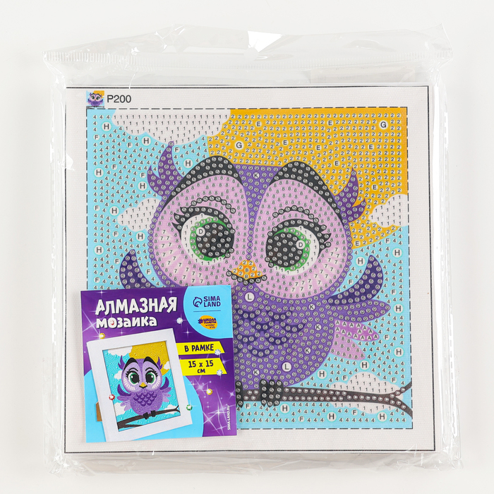 Алмазная мозаика для детей на раме с полным заполнением разнымии стразами «Совушка», 15 х 15 см — Характеристики