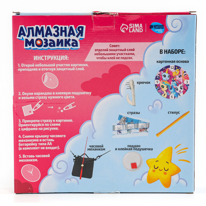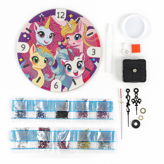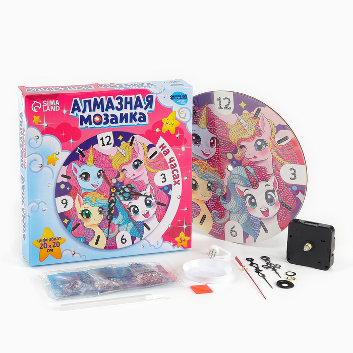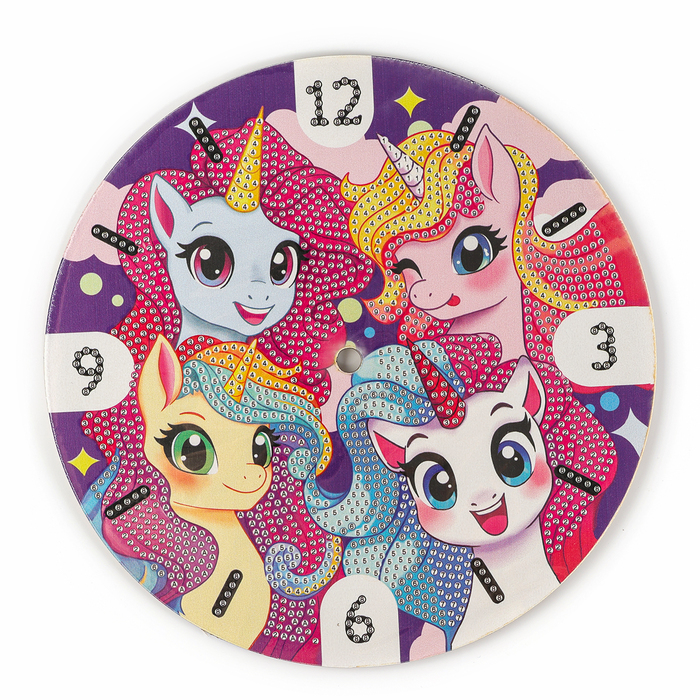 Алмазная мозаика для детей с частичным заполнением на часах «Единорожки», 20 х 20 см — Характеристики