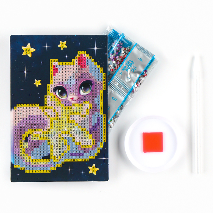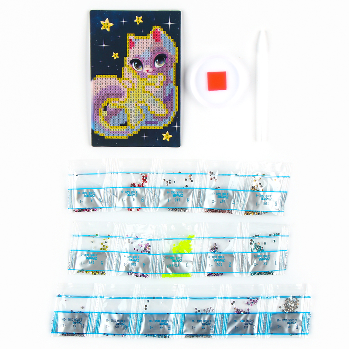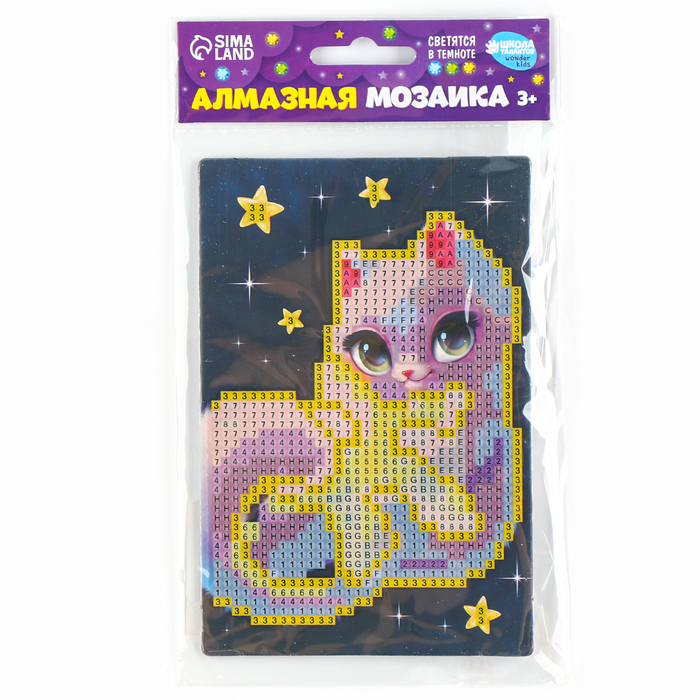 Алмазная мозаика для детей со светящимися стразами «Кошечка на звезде», 10 х 15 см, набор для творчества — Характеристики