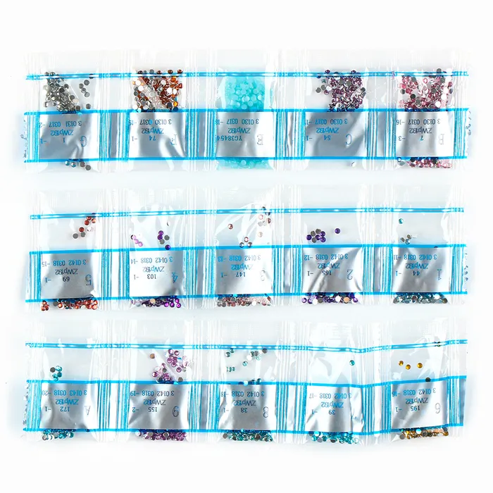 - Разложите кристаллики с помощью карандаша по указанной схеме, заполнив полотно. На картине уже обозначены необходимые оттенки. Холст с клеевым покрытием будет надёжно удерживать стразы.