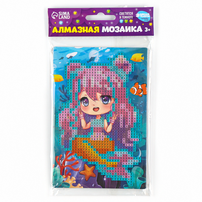 Алмазная мозаика для детей со светящимися стразами «Милая русалка», 10 х 15 см, набор для творчества — Характеристики