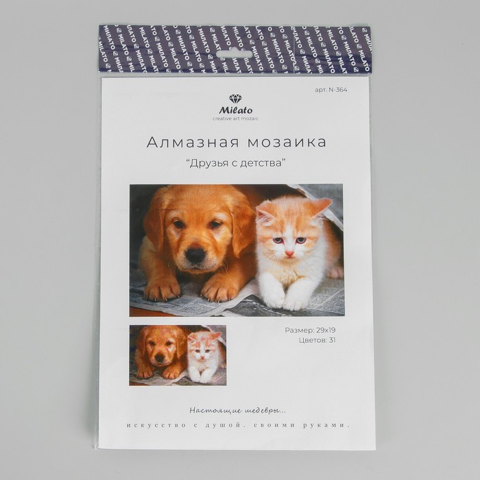 Алмазная мозаика «Друзья с детства» 29 × 19 см,31 цв. + наклейка — Характеристики