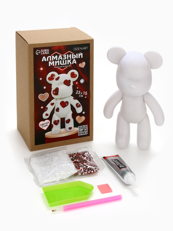 Алмазная мозаика на фигурке с полным заполнением «Медведь с сердечками» — Характеристики