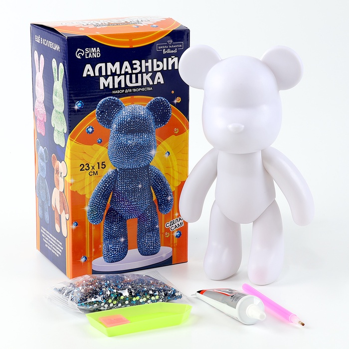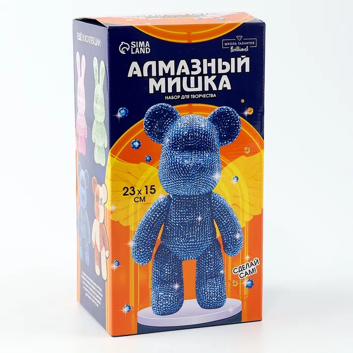 Алмазная мозаика на фигурке с полным заполнением «Медведь», синий — Характеристики