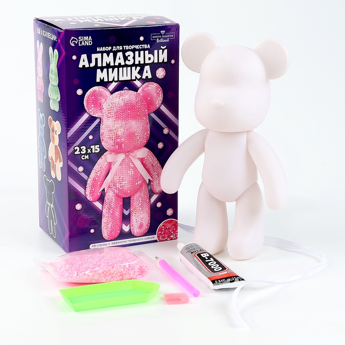 Алмазная мозаика на фигурке с полным заполнением «Мишка стразами», розовый — Характеристики