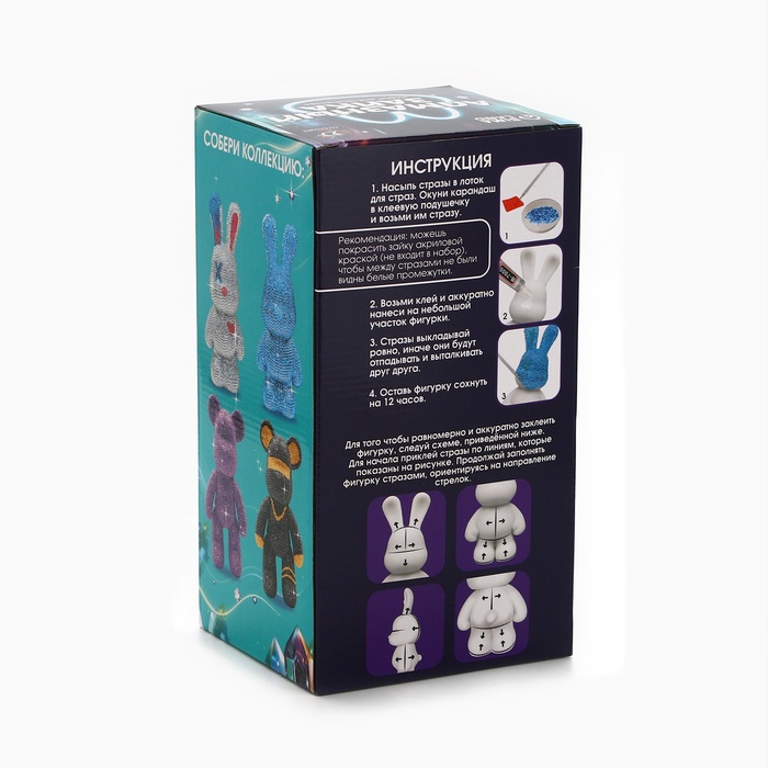 Набор позволит ребёнку смастерить сверкающую игрушку. Малыш с интересом создаст шедевр из ярких страз. Ему понравится не только результат работы, но и сам творческий процесс. Увлекательное занятие поможет развить мелкую моторику рук, усидчивость, внимательность и аккуратность.