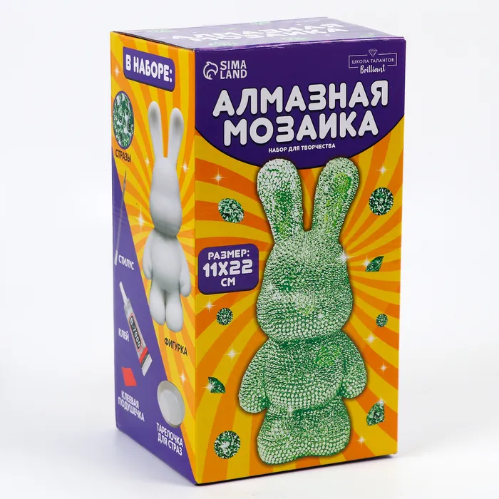 Алмазная мозаика на фигурке с полным заполнением «Зайка», зеленый — Характеристики