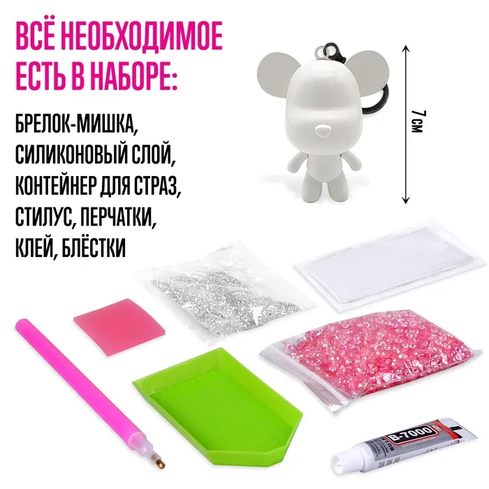 Алмазная мозаика на фигурке «Создай брелок. Алмазный мишка», розовый — Характеристики