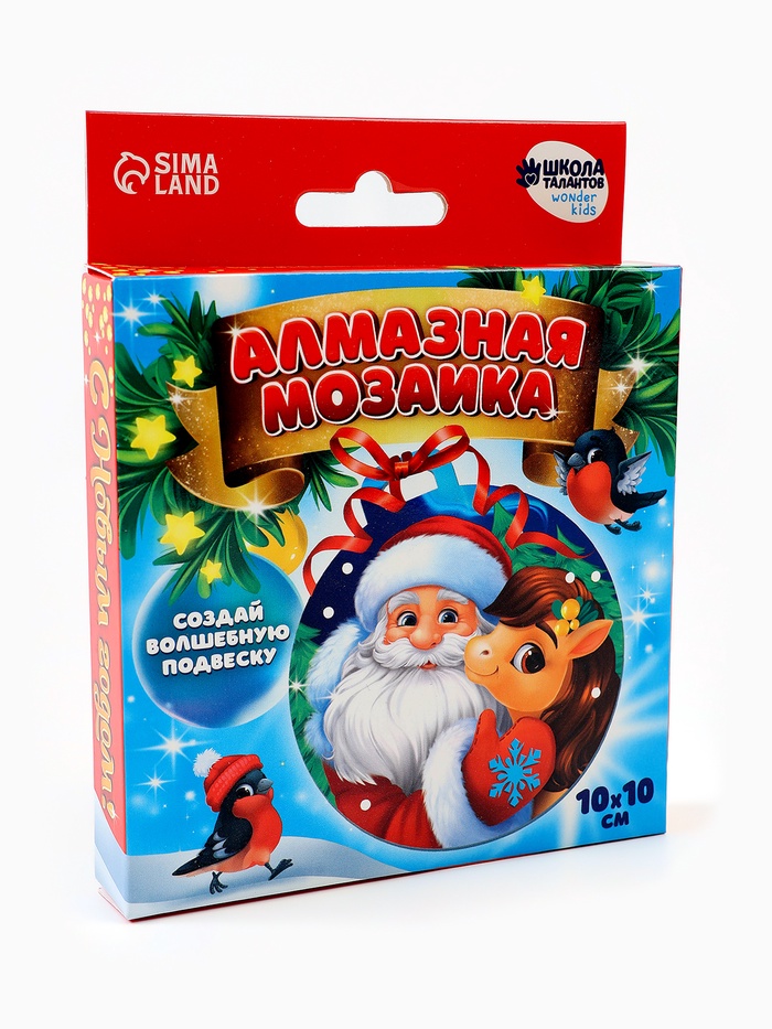 Алмазная мозаика на круглой подвеске 10×10 «Дед Мороз и Лошадка» — Характеристики