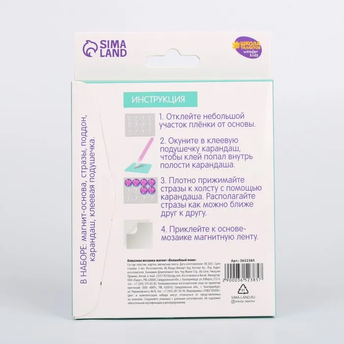 Алмазная мозаика на магните с полным заполнением для детей «Волшебный пони» — Характеристики