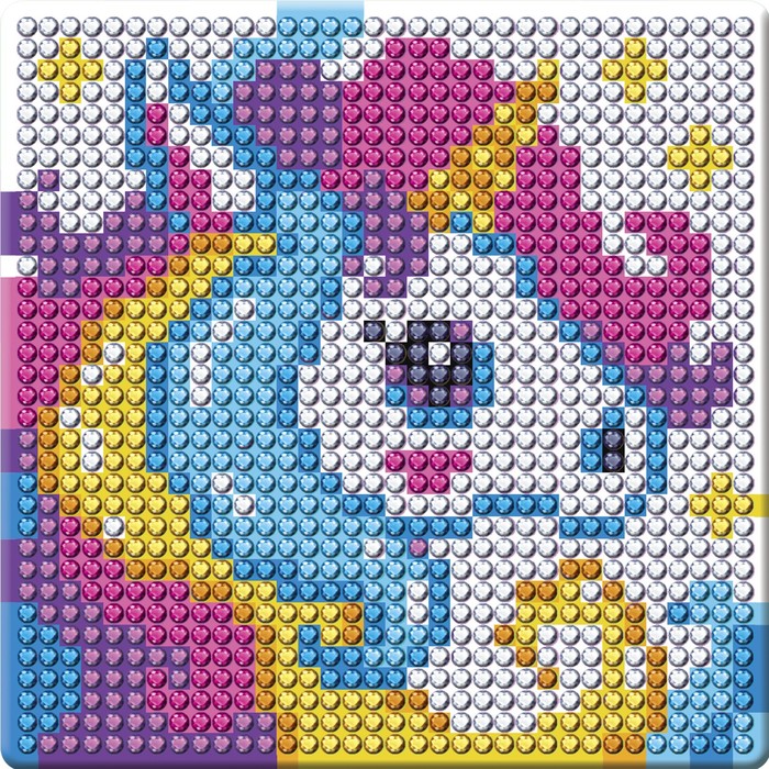 С помощью специального карандаша вам нужно разложить стразы по нарисованной схеме с обозначением необходимых цветов.
