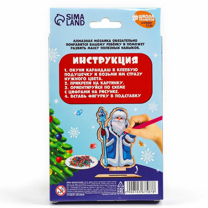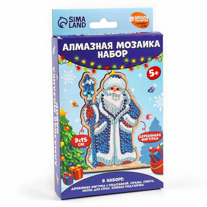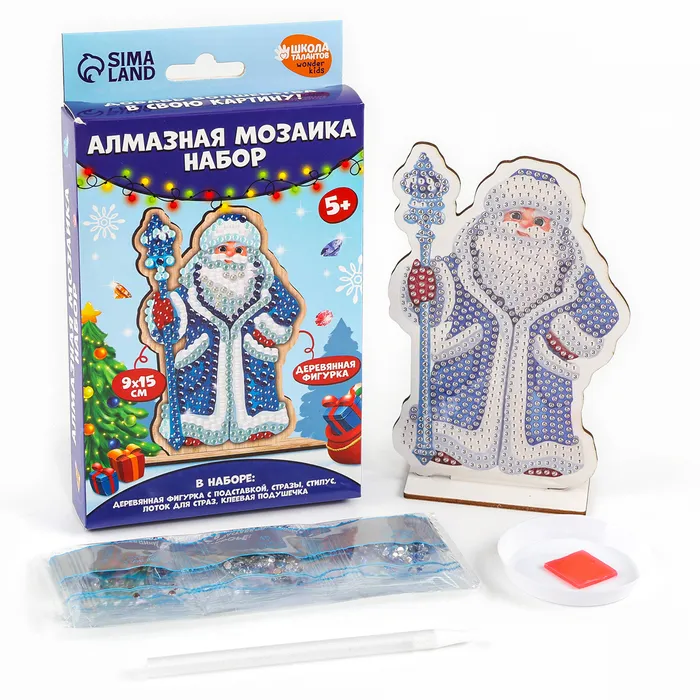 Алмазная мозаика на новый год для детей на деревянной фигурке «Дедушка Мороз», 9 х 15 см, набор для творчества — Характеристики