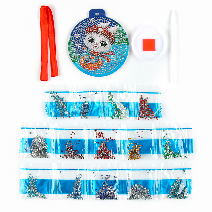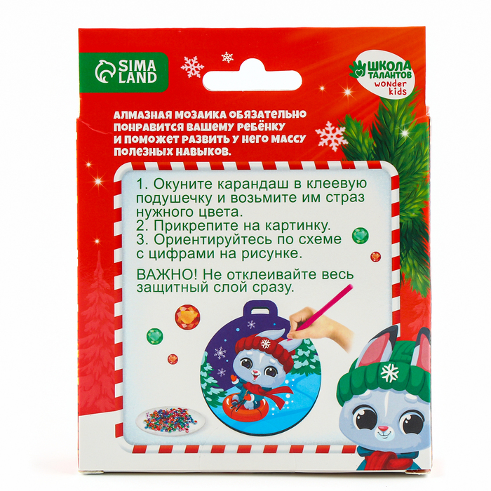 Алмазная мозаика на новый год для детей на подвеске «Зайка», 10 х 10 см, набор для творчества — Характеристики